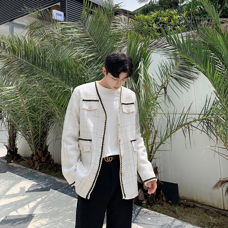 小香风织带复古宽松时髦男西服外套